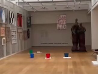 Ministerka kultúry zverejnila video, kde v popredí umeleckých diel vidno na dlážke rozložené vedrá a handry, do ktorých kvapká voda.
